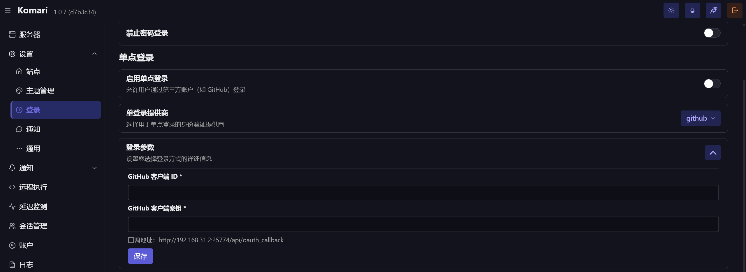 初次登录 Komari 主要是为了验证服务以及建立,接下来我们需要根据自己需求来配置,这非常个性化,不要尝试直接套用本文参数
